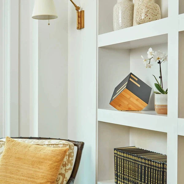 An American classic, this beautiful modern urn is a unique piece that creates a statement in any home. With its distinct lines and complementary colors, it's truly an eye-catcher and a great way to memorialize a loved one.